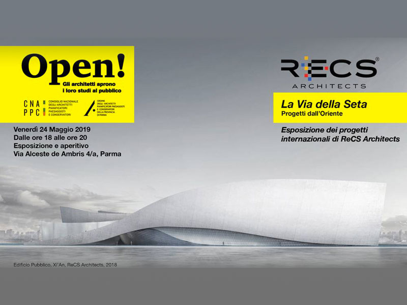 Venerdì 24 maggio 2019 a Parma, in occasione di Open! Studi Aperti, manifestazione promossa a livello nazionale dal Consiglio Nazionale degli Architetti PPC, lo Studio di Architettura RECS Architects ha esposto nei propri spazi i progetti internazionali seguendo un filo immaginario lungo “La Via della Seta”.