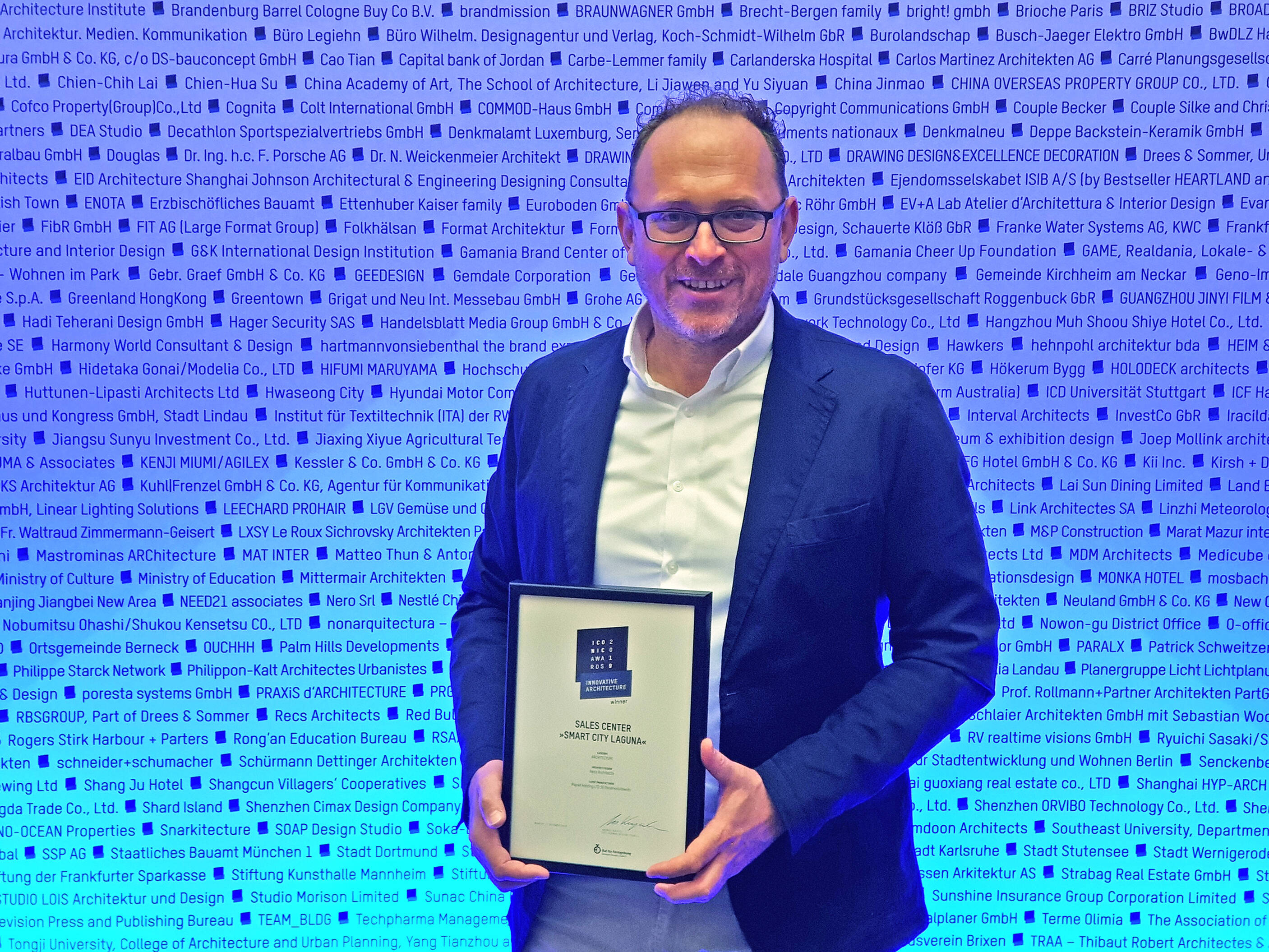 We are very happy to announce that Recs Architects has won the prestigious Iconic Award 2019 in the “exhibition buildings” category for the best architecture of the year with the “Sales Centre – Innovation Hub” in the Smart City Laguna, built in Brazil. The award, instituted by the famous “German Design Council” was withdrawn by our CEO, Pier Maria Giordani, on the occasion of the award ceremony held in Munich on 7 October 2019 in the Pinakothek der Moderne Art Museum.